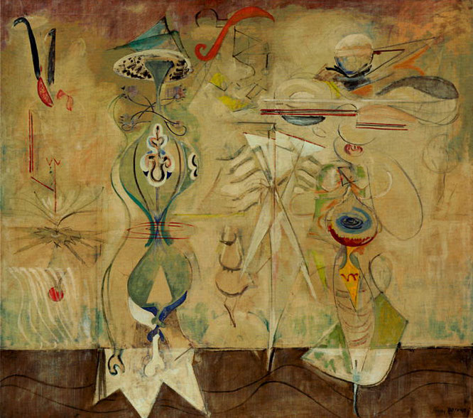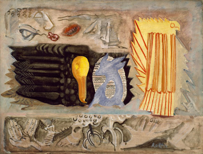 この時期の代表作「アンティゴネー」(1941年)では、ギリシャ悲劇を題材にしながらも、従来の物語的な描写から離れ、象徴的で神話的なイメージを追求している。画面には有機的な形態と幾何学的な要素が混在し、色彩もより大胆で表現的になっている。